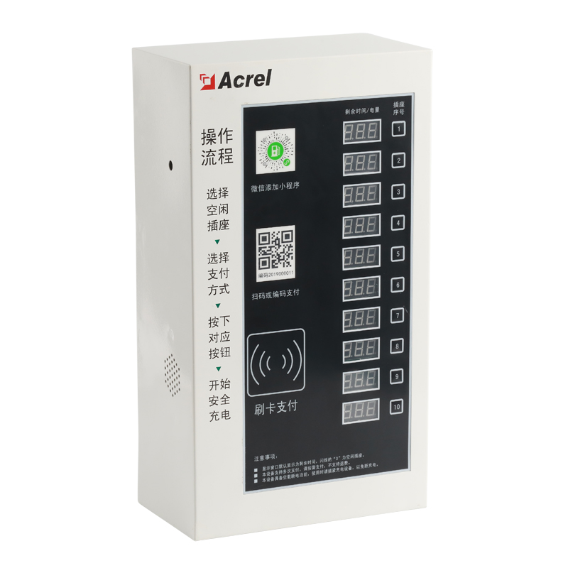 ● 電瓶車智能充電樁最大可外接10路插座,每個插座只支持一臺電瓶車通過車配充電器充電。