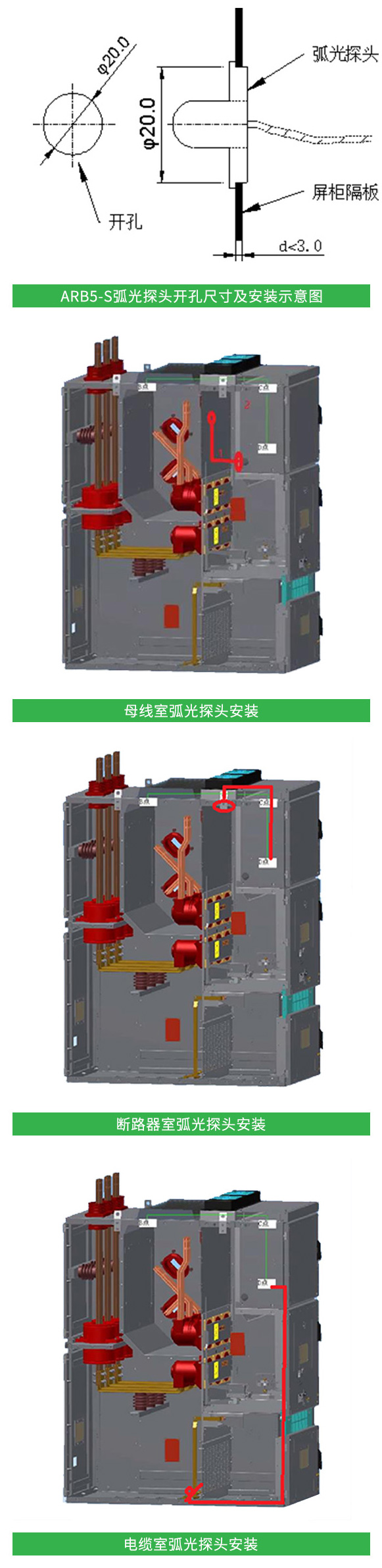 主控單元支持1塊弧光主控板信號接收,同時本身自帶9個弧光探頭的采集信號;