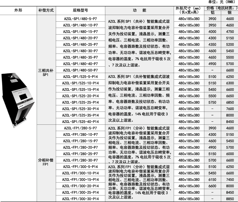 AZCL系列智能集成式諧波抑制電力電容補償裝置是應用于0.4kV、50Hz低壓配電中用于節(jié)省能源、降低線損、提高功率因數和電能質量的新一代無功補償設備。其中串接7%電抗器的產品使用于主要諧波為5次、7次及以上的電氣環(huán)境,串接14%電抗器的產品使用于主要諧波為3次及以上的電氣環(huán)境。