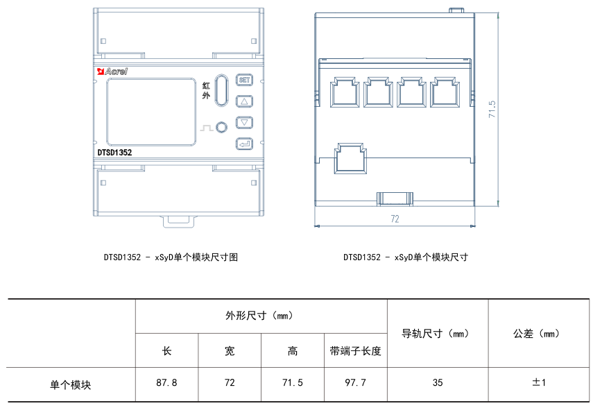 DTSD1352 - xSyD系列導(dǎo)軌式多回路電力儀表主要用于多個(gè)三相回路的全電參量測量,最多可同時(shí)接入x個(gè)三相回路、y個(gè)單相回路的電流輸入??芍苯踊蜷g接測量電壓電流、功率、功率因數(shù)、相角、不平衡度、諧波等參數(shù)。