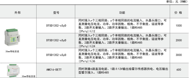 DTSD1352-xSyD導(dǎo)軌式交流多回路電力儀表主要用于多個(gè)三相回路的全電參量測量,最多可同時(shí)接入x個(gè)三相回路、y個(gè)單相回路的電流輸入,可直接或間接測量市電、油機(jī)、照明、空調(diào)、插座等設(shè)備的電壓電流、功率、功率因數(shù)、相角、不平衡度、諧 波等參數(shù)。